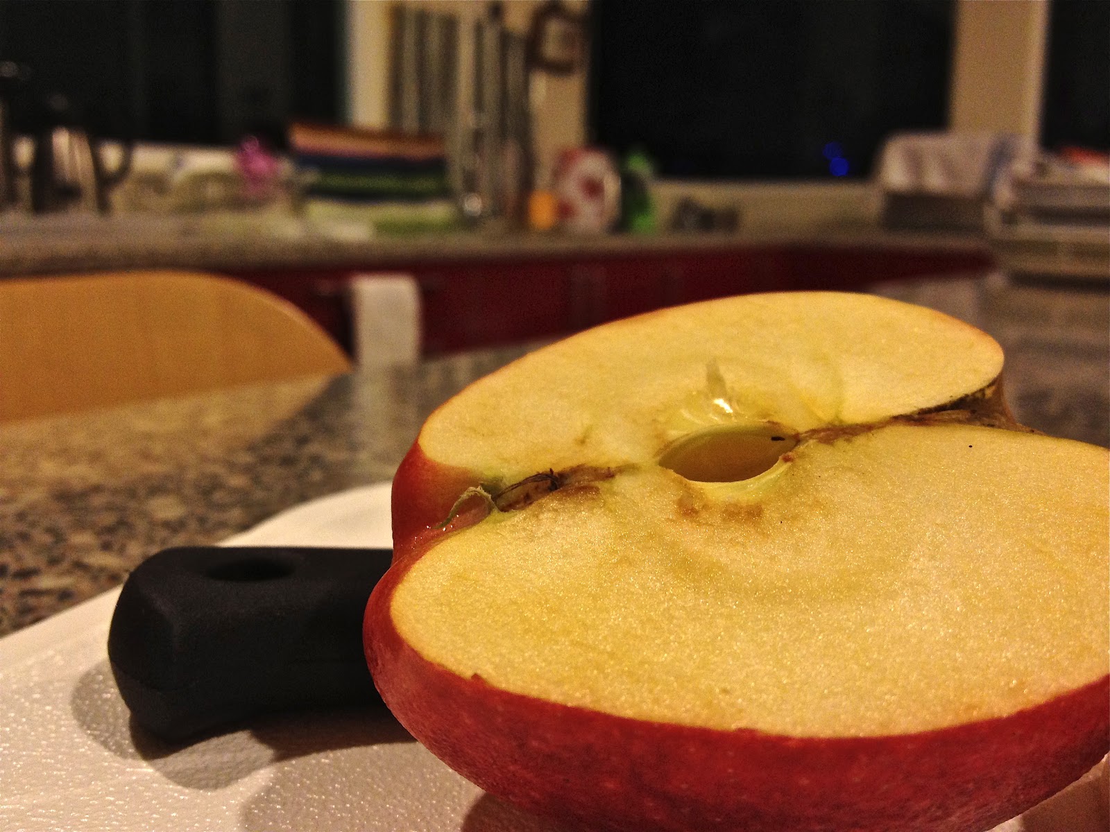 Excuse me if the picture don't seems otherwise (Turning brown). I used my latest iPhone 4S. Trying it out........not bad after all. However, the middle part and side of the apple does indicates it has turned brown.